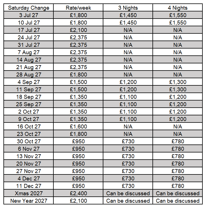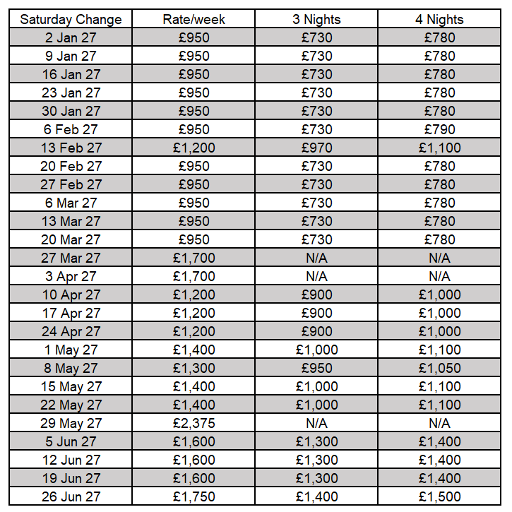 Oak Cottage – Weekly Rates for 2027
